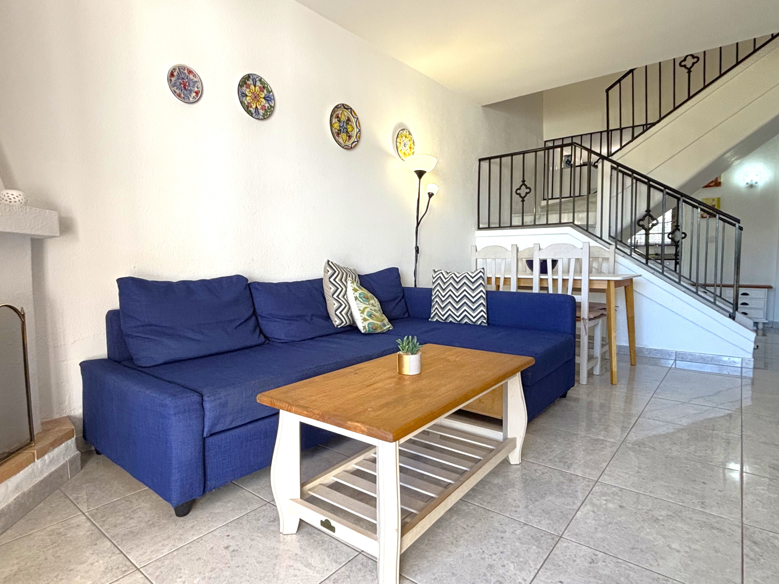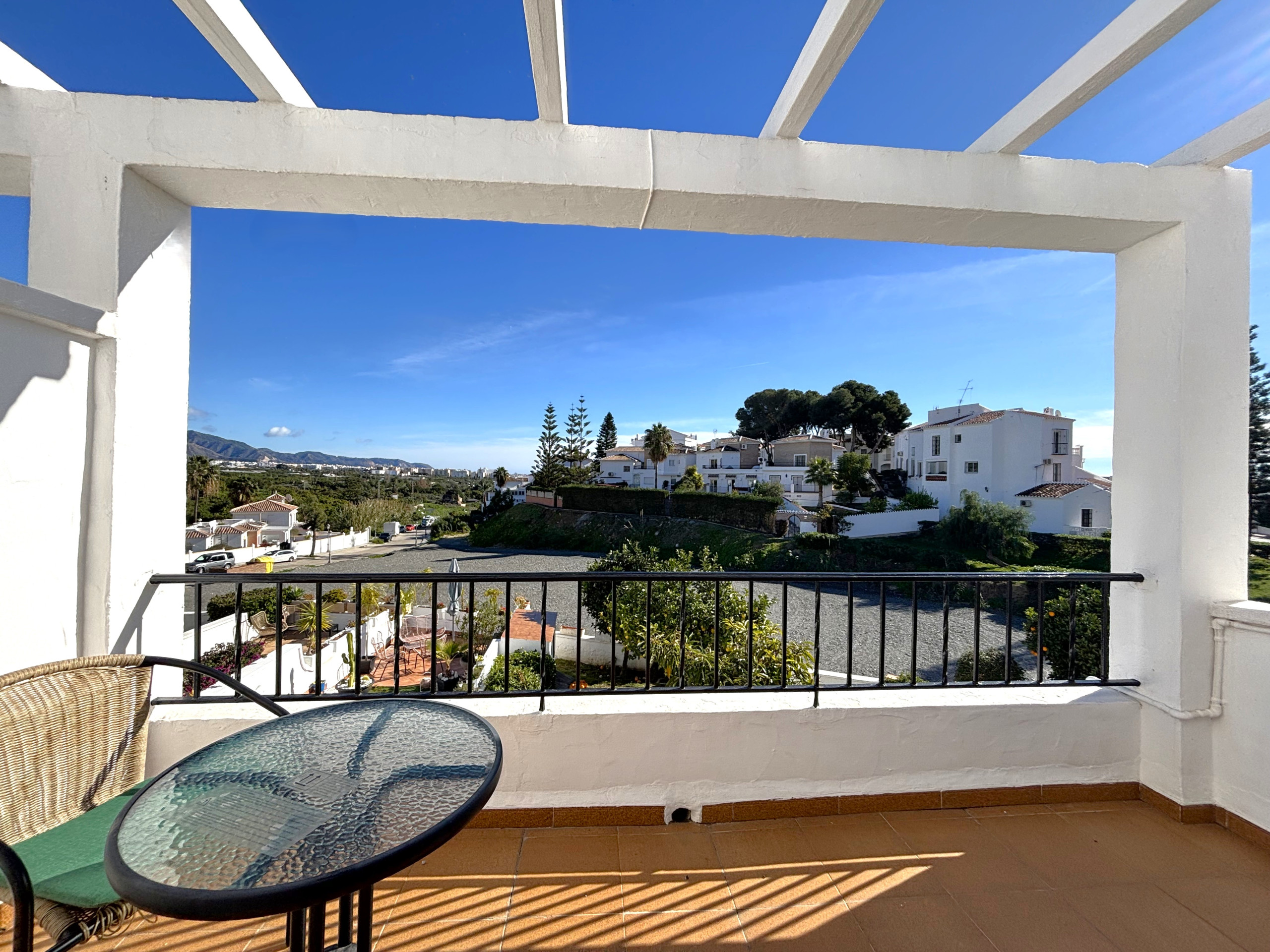 Bonita casa adosada en dos plantas en la Urbanización Tropicana, Consta de dos dormitorios, una terraza con buenas vistas y un baño en la segunda planta, amplio salón con acceso al jardín, cocina y aseo en la planta baja. Hay BBQ en el jardín. Tiene AA/calefacción, Wifi gratis y TV con canales nacionales y internacionales. Piscina comunitaria, La urbanización está situada 2 km de Nerja centro, hay parada de bus local cerca. La playa más cercana es Playazo a unos 600 metros.1